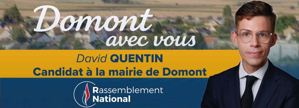 Ingénieur en développement durable, David QUENTIN mène la liste d’union et d’ouverture « Domont avec vous », soutenue par le Rassemblement National et l’Union des Droites pour la République. Le projet repose sur trois priorités claires : Sécurité du quotidien, Proximité des services et des élus, Continuité des finances et des équipements.