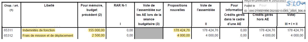 La ligne indemnités de fonction est portée à 178 424,76 €, contre 155 000 € au budget précédent.