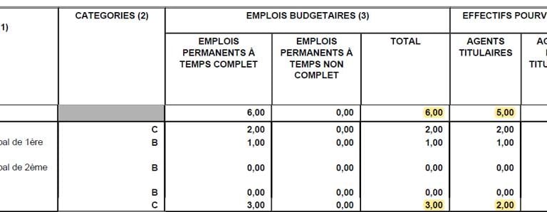 Mais le tableau des effectifs pourvus indique autre chose : 5 postes sont effectivement occupés.